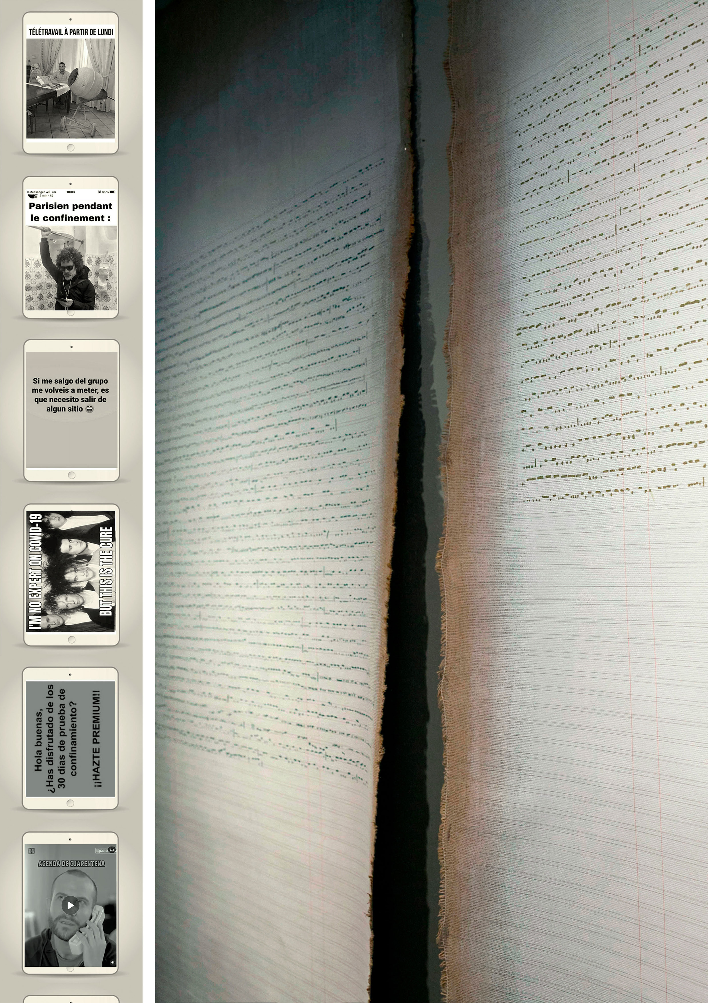 “The telegrams became our only resource […] Beings bound by intelligence, by the heart, or by the flesh were reduced to seeking the signs of this ancient communion in the capital letters of a ten-word dispatch.” Building on this reflection from The Plague (Camus, 1947), the chapter by the artist and researcher Linarejos Moreno analyzes the evolution of the participatory processes of the exhibition STOP VUELVO PRONTO STOP (2019–2020) and the communication systems it explored, which were disrupted by the COVID-19 pandemic. The project, initially based on the collection of citizen telegrams and their collective inscription in Morse code, shifted, following the declaration of the state of emergency, to digital participation through the compilation of messages and memes that were widely circulated during the pandemic. This transformation allowed for a critical examination not only of the technological evolution of messaging devices, but also of the conditions of production, circulation, and credibility of communicative content in a context of extreme isolation. This chapter is part of the volume Confinados+. Arte y Tecnosfera II, which addresses how the COVID-19 pandemic has starkly exposed the effects of a system that reduces life—and therefore the world—to the status of commodity. The health crisis has profoundly impacted experience, consciousness, and perception of reality, intersecting with the deep transformations of the technosphere and producing new forms of fear, uncertainty, and vulnerability. Successive lockdowns have revealed the stark inequities of the world and the precariousness of life, exposing our condition as inhabitants of a fragmented and fragile universe. The book examines how artistic practices developed under confinement perceive this global catastrophe, highlight the disruptions affecting all areas of life, and activate cognitive strategies and reflective devices across creative fields, revealing the tensions and paradoxes inherent in the ongoing process of reconfiguring the sensible and questioning normalized ways of being.