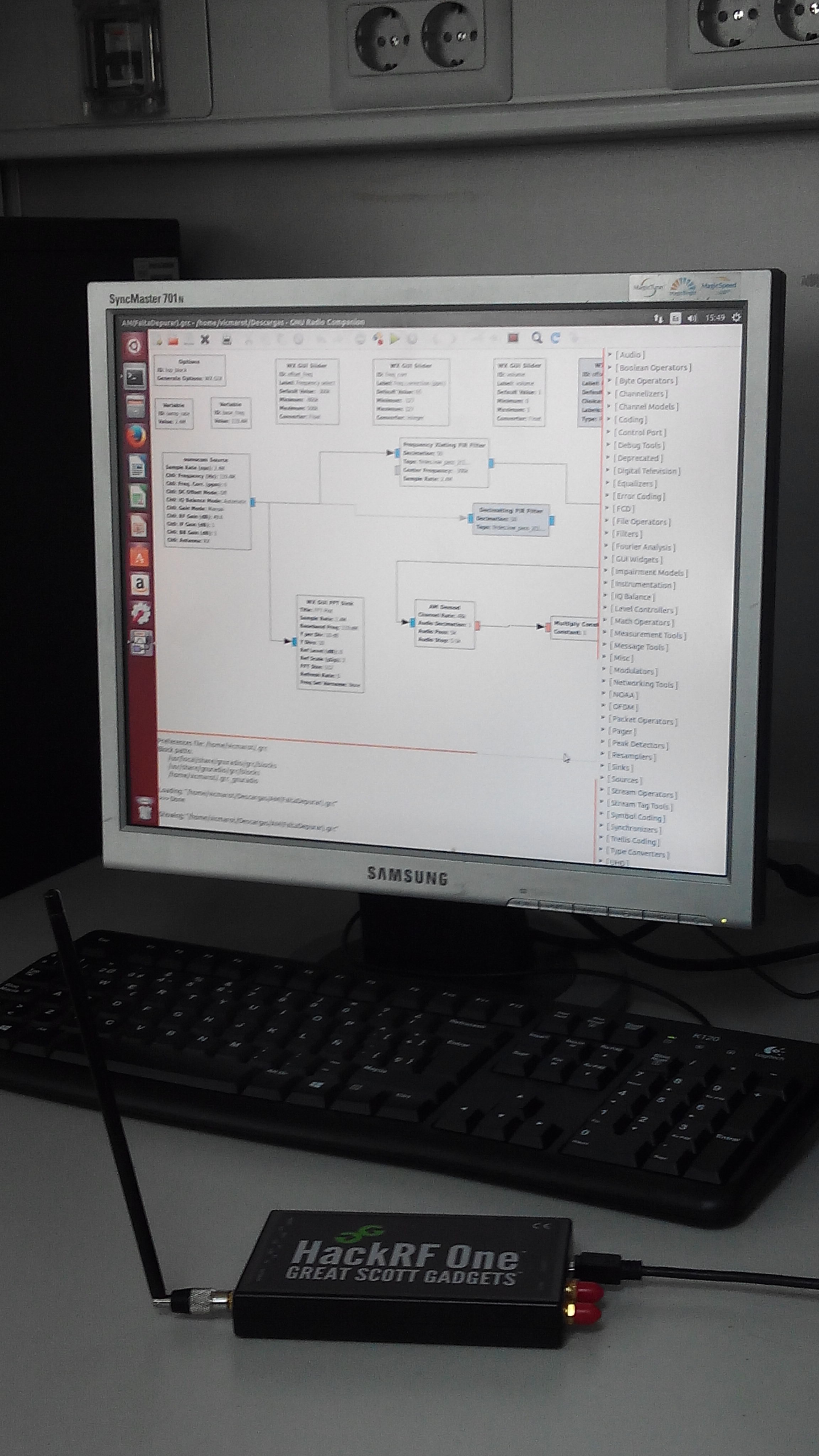 En este proyecto se ha desarrollado una plataforma de bajo coste de Software Defined Radio (SDR, Receptor Radio Software) que consta de una componente hardware y otra software, ambas libres. El uso de la interfaz software nos ha permitido modificar distintos parámetros de transmisión de la señal (filtrado de armónicos, frecuencia de muestreo, demodulador, etc.) y estudiar su impacto en la calidad de la señal mediante la síntesis audible a través del altavoz del PC.