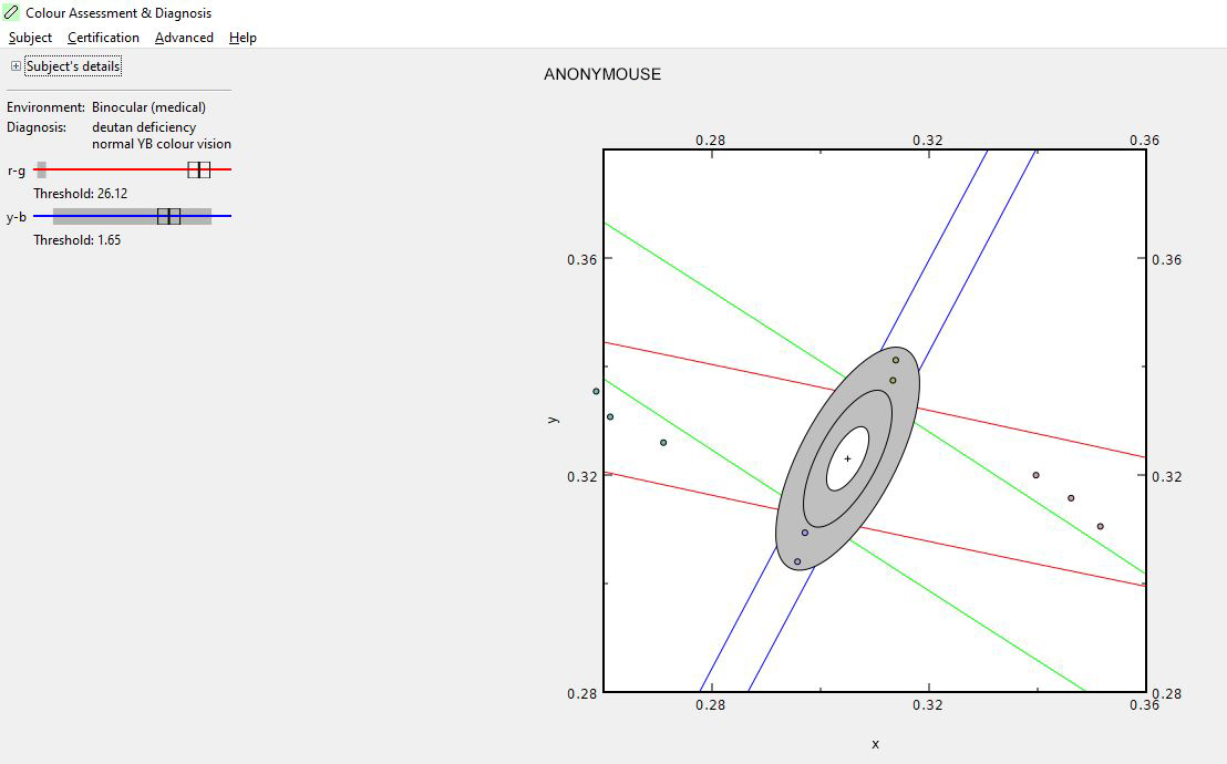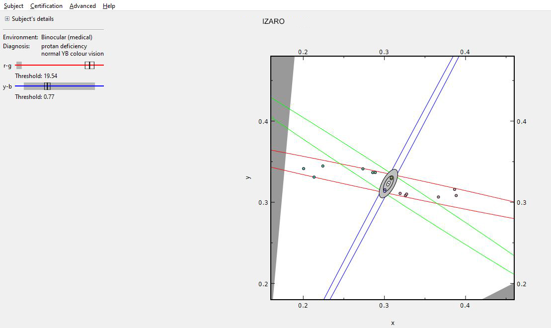 Finalmente, se incluyen los resultados del test CAD de visión cromática para cada sujeto.
