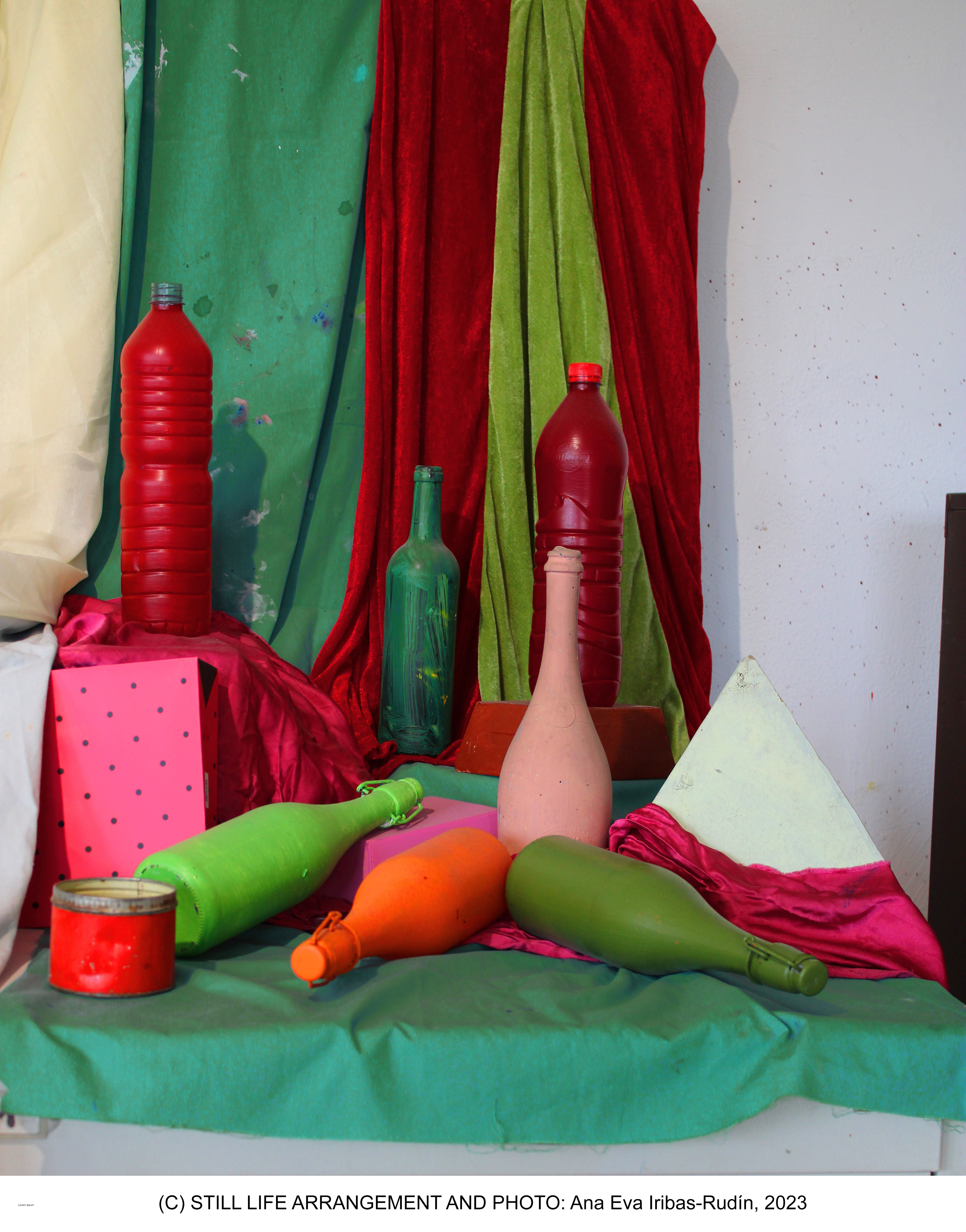 Las imágenes corresponden a tres bodegones que sirvieron de modelo y a la obra pictórica, con temple acrílico sobre lienzo, de cuatro sujetos con discromatopsia, estudiantes del Grado en Bellas Artes de la Universidad Complutense de Madrid.