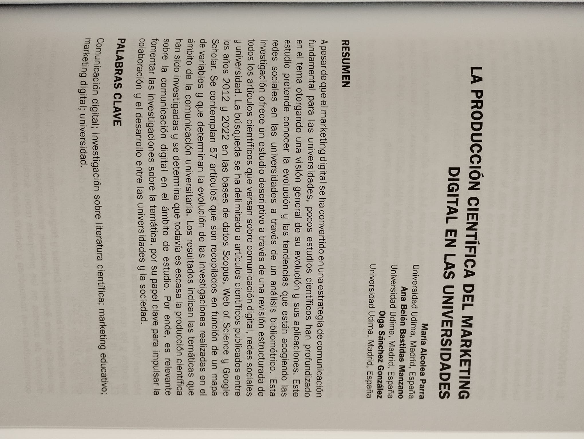 Alcolea-Parra, M., Bastidas-Manzano, A., & Sánchez-González, O. (2024). La producción científica del marketing en las universidades. En Conexiones digitales: la revolución de la comunicación en la sociedad contemporánea, (pp. 319-40). McGraw-Hill